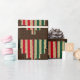 Image printed on wrapping paper is from a photo of an original tapestry crochet wall hanging designed handmade and Copyright © by published designer Delores Chamblin. The picture of a section of the unique handcrafted creation with red black and green Kwanzaa candles in wood brown kinara is reproduced on the wrapping paper.