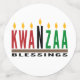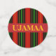 Add a finishing touch to your Kwanzaa holiday decorations with this custom table confetti! The three disc sizes are printed on each side. The largest piece features a 'Kwanzaa Blessings' design where the letters form the candles of the kinara. The flip side has a stripes pattern and the three principles 'Umoja' (unity), 'Kujichagulia' (self-determination) and 'Imani' (faith). The medium sized confetti has the same bright stripes in red, black, green and yellow with one principle on each side - 'Ujamaa' (cooperative economics) and 'Kuumba' (creativity). The smallest circle has a geometric pattern of red, yellow, green and black with the principle 'Ujima' (collective work and responsibility) on one side and 'Nia' (purpose) on the reverse. Bright and meaningful, this confetti will add a festive look to your holiday table.