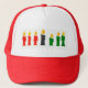 Celebrate Kwanzaa with this red and white 'Trucker' Hat with a red, green and black candle design from a handpainted paper collage by Judy Adamson.