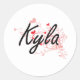 Kyla Artistic Name Design with Hearts Classic Round Sticker