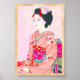 Kyoto Brocade, Four Leaves - Spring japanese lady Higuchi Tomimaro pink kimono beauty geisha woman girl classic girl Japan oriental Asia fine art girly art classic customisable custom name gift