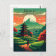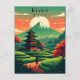 A beautifully illustrated Kyoto, Japan postcard in vintage travel style. Featuring a traditional pagoda, rice terraces, and Mount Fuji at sunset. Ideal for postcard collectors, souvenirs, or Japan travel lovers.