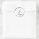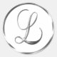 L Monogram Faux Silver Envelope Or Favour Seal. These classic round stickers are printed with non metallic ink on a flat sticker to look like silver. They are not beveled or embossed monograms but are designed to look like they are beveled or embossed monograms. These silver monogram seals are printed on a white background unless you select a different colour background before you proceed to checkout. In addition to being pretty wedding stationery supplies, these elegant wedding invitation envelope seals also make great monogrammed custom Christmas card seals, personalised holiday greeting card envelope seal stickers and customised Xmas card monogram seal stickers.