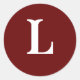 "L" Monogram Initial White on Dark Red Classic Round Sticker