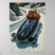 A thrilling Art Deco oil painting depicting two intrepid female bobsledders in a sleek, glossy black bobsled, their stylised geometric forms defined by dramatic chiaroscuro lighting as they careen down a stylised ice run.