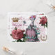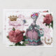 This wonderful shabby chic French looking collage has an enchanting eighteenth century vintage fashion plate, a very stylish bird cage, some beautiful vintage botanical drawings of red roses in full bloom, a royal crown and French wreath and golden bee along with sweet vintage images of birds, the bird in the cage is from an old children’s encyclopaedia. All of those wonderful vintage images are laid over a vintage French engraving. © Wickedly Lovely There are matching La Birdcage envelope seals designed to accompany this beautiful invitation.