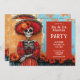 The custom text on the invitation reads: "Join us for a Día de los Muertos PARTY Saturday, October 30 8:00 PM 3011 Muertos Ave. 2 Dead Valley, Funnybones Costume Required, BYOD"