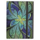 Faux stained glass leaves of green and turquoise frame a central flower in shades of blue and purple.