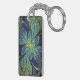 Faux stained glass leaves of green and turquoise frame a central flower in shades of blue and purple. Round and square acrylic keychains also available.