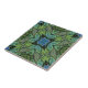 Ceramic tile design from "La Chanteuse V," an Apophysis fractal by Susan Wallace. Copyright © 2010, Susan Wallace. Symmetric organic design of bright green and aqua leaves with a central blue medallion.