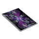 Copyright © 2014, Susan Wallace. Faux stained glass leaves in shades of bright purple, silver, periwinkle and violet frame a central flower of vibrant purple in this intricate abstract piece.