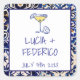 Charming mediterranean tile design on this square sticker for a modern italian wedding. Theme: la Dolce Vita, limoncello, italian, margarita, lemon cocktail, mediterranean.