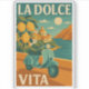 Celebrate the charm of Italy with this beautifully illustrated retro design inspired by La Dolce Vita — the sweet life. Featuring a vintage Vespa scooter, sun-soaked coastline, ripe lemons, and terracotta rooftops, this artwork captures the spirit of Mediterranean freedom and effortless Italian style. Perfect for lovers of Italy, travel, sunshine, and mid-century design. Add a touch of wanderlust to your space or wardrobe with this timeless piece.