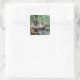 Pierre-Auguste Renoir. La Grenouillère . lovely landscape on the river in green tones. There are boats on the shore. In the middle ground, a group of people stands on a walkway under a spreading tree. In the background there are yazta and trees. Reproduction of famous works of art images in the public domain.