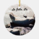 Travel Christmas ornament with a photo of a seal blowing a kiss by the ocean at La Jolla, California.of the ocean at Laguna Beach, California. This ornament is a great souvenir for a vacation in the San Diego area.