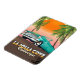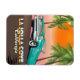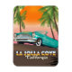 La Jolla Cove California travel poster with a beautiful old retro car by some tall swaying palm trees.