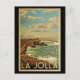 This La Jolla vintage travel design features a coastal view of La Jolla, California.