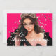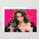 This modern style 5x7 size invite is shown created in Hot Watermelon and Black colour scheme with a young lady.