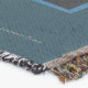 A quality printed throw has its advantages. This is a much finer weave throw than its loopier cousins, and though lighter, it is worth the investment for custom room accessorizing. The back is much prettier than the typical brown, and the fringe on the long sides very vivid, the selvage nicely done. Before photographing, I washed the throw in cold water, delicate, with a thicker woven throw the same size. On tumble dry low, this throw was dry in half the time as the other. This is a very practical quality if you use throws for furniture covers or to wrap up in frequently. The sleekness of the fabric makes it a great layer for accenting or protecting without the feeling of sitting on too much stuff. Perfect for napping or when you feel a light chill coming on. The color printing is beautiful and on this fabric, matched the design and color of my Photoshop image. This is an advantage for blending room fabrics and colors. The fringe on the short sides prints the colors from the design image and therefore varies from the side fringe. I streaked a white fractal line through the plaid pattern to give the illusion of weaving. This printed as crisp as an illusory thread, and put some white in the short side fringe, showing another advantage of print vs loomed- for artistic purposes, line lines, detail, and color integrity can be planned and preserved. My loomed throws have color limitations and more of a needlepoint texture. Print throws reproduce an exact image. The throw felt a little stiff straight out of the package, but this went away in the first delicate wash. Of course I searched the wash water for ink or bleeding and there was none.