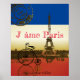 This design futures a view of the Eiffel Tower from the Trocadéro. and blue and red background.
