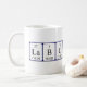 Lab Chick spelled out as La B C H I C K (Lanthanum Boron Carbon Hydrogen Iodine Carbon Potassium) on a mug for the scientist who knows what she wants.