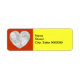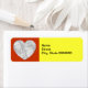 Frame in red, with a heart cutout is to the left of the Name/address area of the label. Personalise with your own image within the frame, as well as the desired name/address. You may Customise by changing background colour.