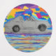 Labels with my artwork. Cute play on pup driving a vintage car.