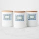 These attractive labels can be used on many kinds of jars and canisters. They can be used in the kitchen, pantry, nursery or office. The decorative frame is blue and green on white. It is a design of handmade tile from Oregon Tile maker Fay Jones Day. Customise it.
