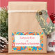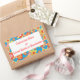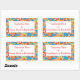 A sheet of colourful Stick-on Labels with an all-over pattern of red, orange, yellow flowers on a bright turquoise background, from a handpainted paper collage by Judy Adamson.  (Delete the text if you want to leave the labels blank to write on by hand.) So many uses!
