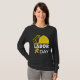 I love this shirt. I had written to the artist asking her if this picture was available on a shirt, and she wrote me back telling me where I could find the shirt. These shirts can be custom made to have a different saying. I loved this saying and went with it. The artist wrote me back later to tell me that she had seen my order go through. How's that for service? Pretty special. It's just as displayed. Perfect!