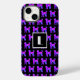 Monogrammed Labradoodle Phone Case: Perfect for Dog Lovers. Upgrade your phone's style with this captivating dog phone case! Featuring a charming dog breed silhouette in a pink and blue pattern on a black background, and personalized with your initial.