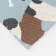 Cute Labradoodle / Goldendoodle dogs sit and stand and rollover with cream, apricot, chocolate, black and parti coats with scattered dog bones and pawprints pattern.