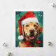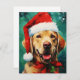 Colourful and joyful Christmas design with a Labrador wearing a Santa hat.