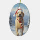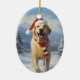 Colourful design of a happy Labrador wearing a santa hat running through the snowy mountains and wishes a merry christmas.