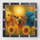 This vibrant square clock features three adorable Labrador puppies, one playfully coloured in blue, and two in golden hues, set against a cheerful and bright backdrop. Its unique and artistic design brings a touch of happiness and warmth, making it a perfect decorative timepiece for any dog lover's home.