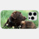 This case features a photograph of the chocolate Labrador Retriever in cool green grass and purple wildflowers. Click Customise it! to add text in a font style, size and colour you prefer. Great gift idea for a dog lover.