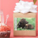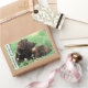 This rectangular sticker features a photograph of the chocolate Labrador Retriever in cool green grass and purple wildflowers. Fill in the template fields with your words or quote, remove the text and text bar or click Customise it! to select a font style, size and colour you like.