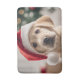 Cute Labrador Retriever puppy wearing a Santa hat.