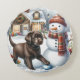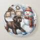 Labrador Retriever Christmas Snowman Puppy Dog Round Cushion