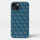 Labrador Retriever Dog Cute Silhouette Grid Blue iPhone Case