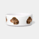 This is a heavy, durable bowl decorated with Tibbies of many colors, the perfect size for hungry/thirsty Tibs. The design is interesting and printing clear.
