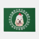 The perfect Christmas welcome doormat for anyone who loves Labrador Retriever dogs. This cute Lab wears a Santa hat and is surrounded by a wreath of snowflakes on a seasonal winter green background.