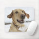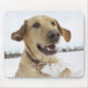 Labrador retriever jumping through deep snow mouse pad