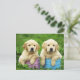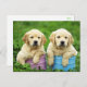 Aww...Who can resist the sweet face of a Labrador Retriever Pup? This charming canine post card features two yellow labrador retriever puppies oustside playing in pails highlighted against a green grass background. These sweet pups are ready to help you send smiles to family and friends.