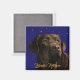 Anyone who has lost their heart to a regal Labrador Retriever Dog will love this refrigerator magnet! It features a gorgeous chocolate coloured Labrador Retriever looking up against a blue night sky filled with gold stars. The bottom has custom text in gold script that says "Labrador Retriever". You may customise the text, or even remove it if you prefer.