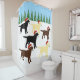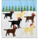 Labradors Christmas Santa Snowfield Shower Curtain. Each Labrador has Santa's hat and evergreen leaf. Created by Naomi Ochiai.