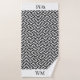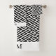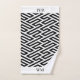 Labyrinth maze art deco style geometric pattern in black and white. Personalise with your name, monogram or initial in matching colour font on both ends of the bath and hand towels.