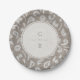 Elegant neutral vintage floral lace and burlap design with couple's monogram, great wedding paper plates for rustic wedding, country wedding party all year long, particularly in winter.