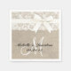 This custom paper napkin is perfect for your rustic or vintage themed wedding reception. Features a burlap and lace print background with ribbon accent in your wedding colours. Contact us for custom colour requests at no additional cost.