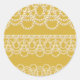 A super cute sticker design with a lace pattern made out of white pearls on a gold-coloured background.